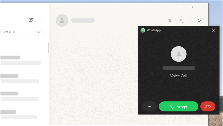 وطالما أن هاتفك متصل بالإنترنت وبرنامج WhatsApp Desktop قيد التشغيل في الخلفية على الكمبيوتر، فتوقع في أي وقت أن تنبثق أمامك نافذة إذا تلقيت مكالمة صوتية أو مرئية واردة، فيمكنك الرد أو الرفض أو تجاهل المكالمة بالضغط على زر Cancel. وبالمناسبة، توصى واتساب باستخدم سماعة رأس أو سماعة أُذن للحصول على أفضل تجربة ممكنة أثناء إجراء المكالمات من الكمبيوتر، فقد يؤدي استخدام ميكروفون خارجي منفصل والسماعات الخارجية إلى حدوث صدى صوت.