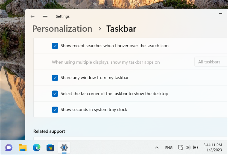 الخاصية الجديدة تقوم بطي شريط المهام عند فتح أي برامج لمنح المستخدم مساحة أكبر على الشاشة وفي نفس الوقت منع استدعاء شريط المهام بالخطأ، ثم عند تمرير مؤشر الماوس إلى أسفل الشاشة أو النقر باصبعك على الشريط المطوي يتم عرض شريط المهام بالكامل وبصورة أضخم من المعتاد عليه في الوضع الأساسي ليكون أسهل في الاستخدام مع اللمس. الخاصية يمكن تفعيلها عن طريق التوجه إلى صفحة Personalization في الإعدادات ثم الضغط على Taskbar ثم Taskbar behaviors وتنشيط خيار “Optimize taskbar for touch interactions”.
