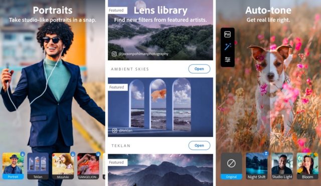 تطبيق من شركة أدوبي المعروفة وهو تطبيق للتصوير لكنه مختلف كثيراً عن كثير من التطبيقات، التطبيق يستخدم الذكاء الاصطناعي للتعرف على الصور وإضافة الفلاتر المناسبة لها، أيضا به الكثير من المؤثرات، ومن أكثر المؤثرات التي سوف تجعلني أقترح هذا التطبيق على زوجتي هو فلتر الطعام، الذي يتعرف تلقائياً على الطعام ويقوم بتحسين الصورة بشكل رهيب. التطبيق أيضا يتعرف على السماء ويعطيك القدرة لإضافة سماء مختلفة بأشكال متعددة وأيضا متحركة. الرائع أن التطبيق مجاني بالكامل وهو أساسي لكل محب للتصوير.