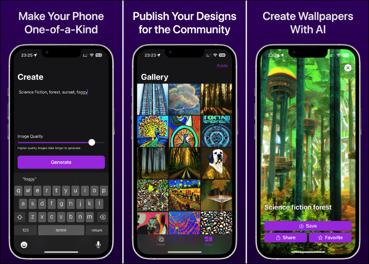 يمكنك باستخدام هذا التطبيق المميز إنشاء خلفيات شاشة فريدة خاصة بك بمساعدة تقنيات الذكاء الاصطناعي على الآيفون. AI Wallpapers Generator مجاني تمامًا، ما عليك سوى إدخال كلمة أو عبارة من وحي خيالك ودع التطبيق ينشئ خلفية فريدة من نوعها بناءً على ما كتبت! يمكنك بعد ذلك حفظ الخلفية في مكتبة الصور لاستخدامها كخلفية لشاشة القفل أو الشاشة الرئيسية أو الاثنين معًا، أو مشاركتها مع الأصدقاء عبر وسائل التواصل الاجتماعي، كما يمكن نشرها على المنتدى الخاص بالتطبيق حيث يمكن العثور على خلفيات صنعها مستخدمون آخرون أيضًا. [تحميل التطبيق: iOS]