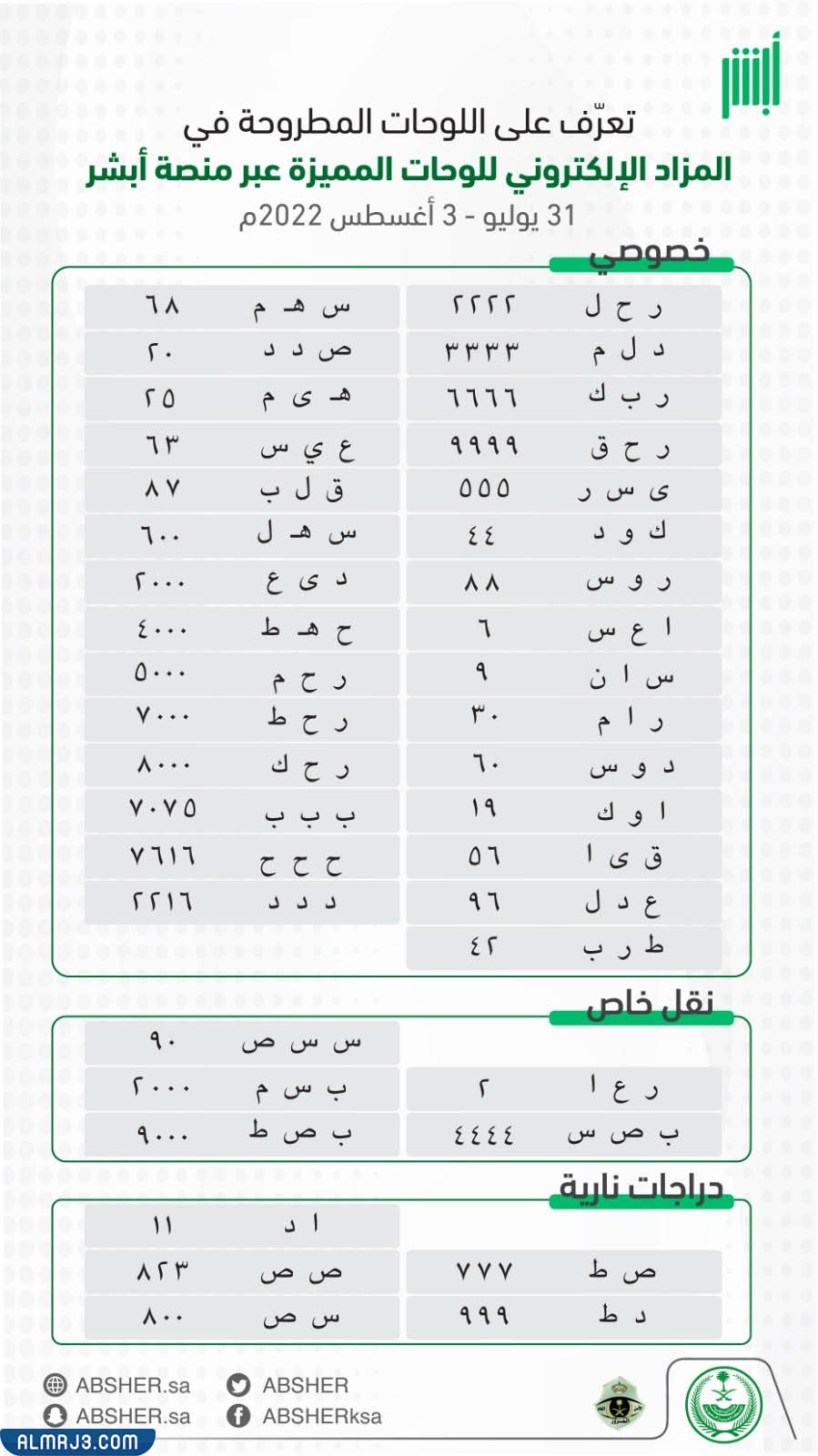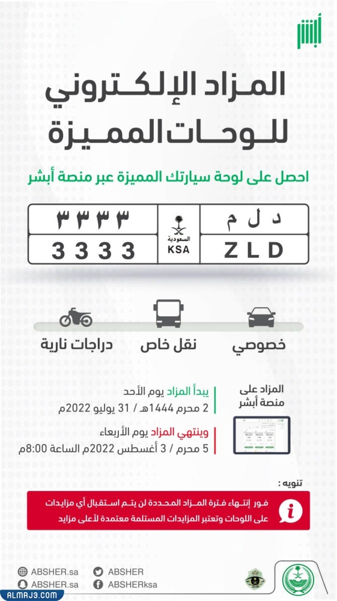 منصة أبشر 1444 وطريقة المشاركة ، منصة اللوحات الإلكترونية ، البيئة الوزارة للمرور في المملكة العربية السعودية خدمة اللوحات المميزة الإلكترونية عبر منصة أبشر ، ومن خلال موقع كريستينا نفسه ، كريستينا السابق ، اللوحات الإلكترونية ، وما هي طريقة المشاركة في المزاد.