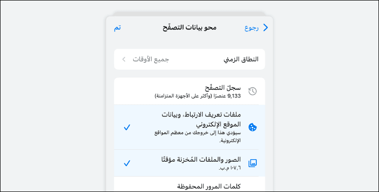 بينما لو كنت تعتمد على متصفح خارجي، فستجد مثل هذا الخيار ضمن الإعدادات. في جوجل كروم، على سبيل المثال، يمكنك حذف الكاش عن طريق النقر على زر القائمة (…) واختيار “الإعدادات” ثم “الخصوصية” وبعدها اضغط على “محو بيانات التصفّح” وقم باختيار “جميع الأوقات” من قائمة النطاق الزمني، بعد ذلك اضغط على زر “محو بيانات التصفّح” بالأسفل.