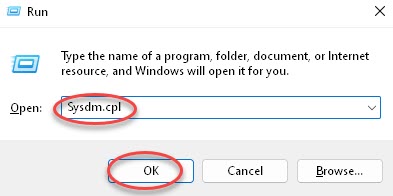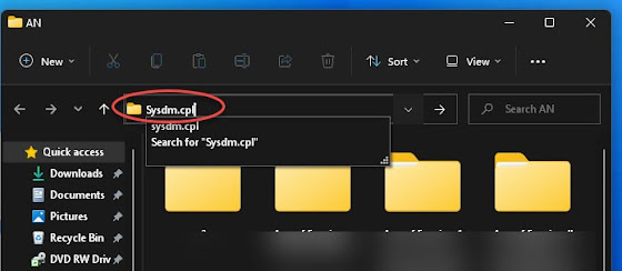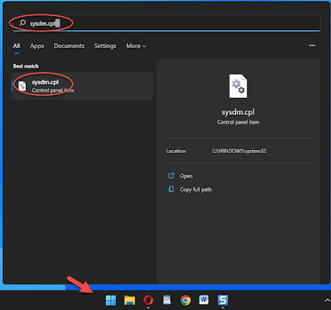 ستقوم بالتوجه إلى قائمة ستارت، ثم قم بكتابة هذا الأمر Sysdm.cpl سيظهر ملف بنفس الإسم قم بالنقر فوقه لفتحه