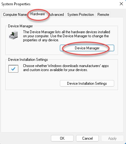 الأن، ستفتح نافذة توجة إلى تبويب “Hardware” ثم النقر فوق زر “Device Manager” وعلى الفور سيتم فتح صفحة مدير الأجهزة