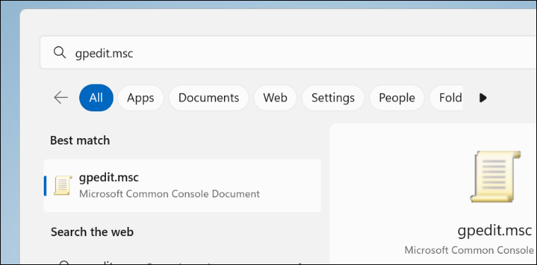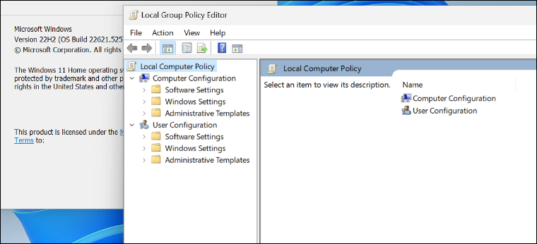من المفترض أن أداة Group Policy Editor أصبحت جاهزة للعمل على جهازك الذي يعمل بنسخة ويندوز 11 هوم. لتشغيلها، كل ما تحتاجه هو فتح شريط البحث بالضغط على مفتاحي Win + حرف S معًا ثم كتابة “edit group policy” والضغط على Open أو عن طريق فتح نافذة Run بالضغط على مفتاحي Win + حرف R وكتابة الأمر “gpedit.msc” ثم الضغط على Enter. بغض النظر عن الطريقة المستخدمة فسوف تفتح لك نافذة Local Group Policy Editor.